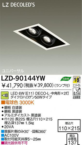 機能/他:■首振片側のみ30°・回転360°|■AC100V|■埋込必要高137mm|■取付可能天井厚5〜25mm|■調光器併用不可|Ra80|ダイクロハロゲン50Wタイプ