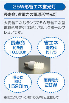 25W形(E26)×1灯 昼白色電球形蛍光灯(D形パルックボールプレミア)(EGL)