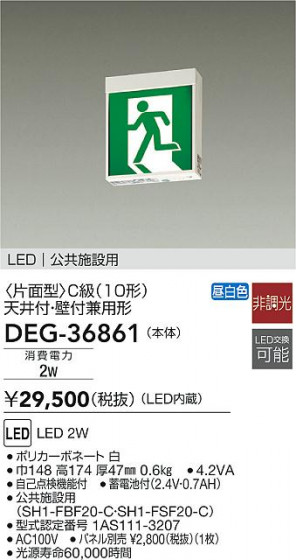 DAIKO 大光電機 誘導灯/片面型 DEG-36861