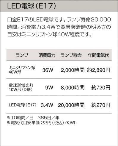 LED電球 3.4W(E17) 電球色 2800K