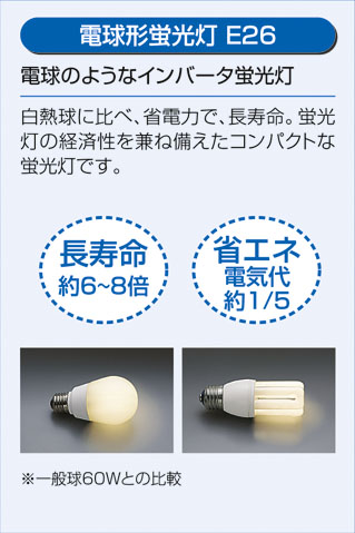 25W形(E26)×1灯 電球色電球形蛍光灯(D形)(EGL)
