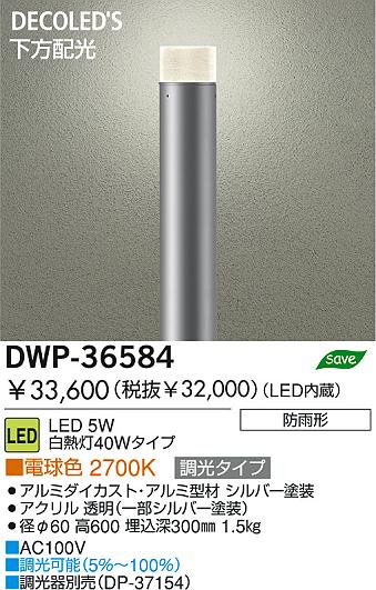 機能/他:■AC100V|■調光可能(5%〜100%)|■調光器別売(DP-37154)|白熱灯40Wタイプ|DECOLED’S|下方配光|SAVE