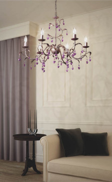 白240W|◆クリアシャンデリア球40W(E17)×6|◆本体:鋼・シルバー色ハンドペイント仕上|◆飾:ネオジュームガラス|◆高-600 幅-φ795 全長-2500〜710mm 重-3.7kg|◆手作り品のため写真と多少異なることがあります|消費電力:222W