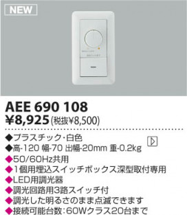 LED13.2W|◆LED5球(13.2W)|◆枠:アルミダイカスト・ファインホワイト塗装|◆幅-φ110 出幅-2 埋込穴径-φ100 埋込高-79 取付必要高-100mm 重-0.7kg|◆高演色タイプ・Ra90以上|◆電源ユニット内蔵型|◆光束維持率70%時:約40,000時間|◆調光範囲(100〜約5%)|◆5〜25mmの材厚で取付けてください|◆別売専用調光器〔AEE690108 ¥8,925(税込)〕|◆白熱球100W相当の明るさ|◆リニューアルプレート対応型〔AEE951135別売 ¥3,360(税込)〕|◆リニューアルプレート対応型〔AEE951136別売 ¥3,360(税込)〕|消費電力:13.2W