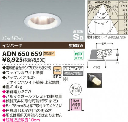 蛍25W|◆電球形蛍光ランプD25形(E26)|◆ファインホワイト塗装|◆バッフル:アルミ・ファインホワイト塗装 上部鏡面|◆幅-φ142 出幅-3 埋込穴径-φ125 埋込高-88 取付必要高-100mm 重-0.4kg|◆パルックボールプレミア同梱器具|◆傾斜天井に取付可能(55°まで)|◆5〜25mmの材厚で取付けてください|◆白熱球100W相当の明るさ|◆配光は傾斜天井対応ではありません|◆照射近接限度10cm|消費電力:20W