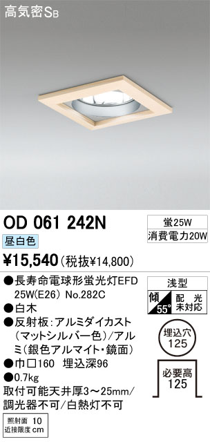 省エネ達成率:100%寸法:径□160 出13 製品重量:0.7Kg 本体材質:●白木|●反射板:アルミダイカスト(マットシルバー色塗装)/アルミ(銀色アルマイト・鏡面) ランプ:長寿命電球形蛍光灯EFD×1 光源色:昼白色