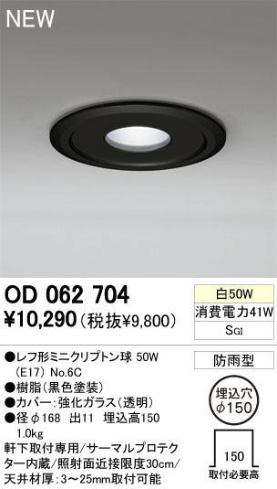 防雨型 埋込高:150mm ダウン取付必要高:150mm ダウン取付天井厚:3〜25mm SGI形
