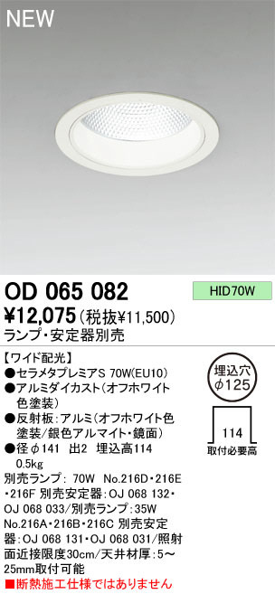 別売ランプ:|70W (No.)216D・216E・216F|別売安定器:OJ 068 132・OJ 068 033 別売ランプ:35W (No.)216A・216B・216C|別売安定器:OJ 068 131・OJ 068 031 照射面近接限度30(cm)