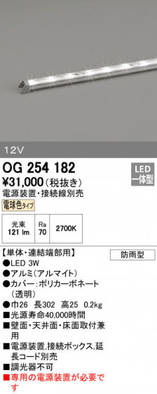 入力電圧:12V 壁面・天井面・床面取付兼用 別売専用電源装置:OA 253 058・OA 253 059 別売専用延長コード:OA 253 002・OA 253 004・OA 253 006