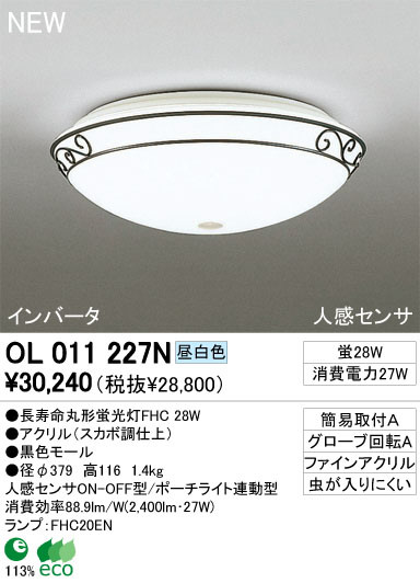 省エネ達成率:113%寸法:径φ379 高116 製品重量:1.4Kg 本体材質:●アクリル(スカボ調仕上)|●黒色モール ランプ:長寿命丸形蛍光灯FHC×1 光源色:昼白色