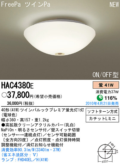 寸法:幅φ360・高157 製品重量:1.2 本体材質・仕上・色:高拡散クリーンアクリルカバー(乳白) 電球色
