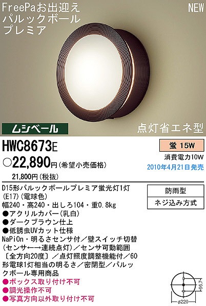 寸法:幅240・高240・出しろ104 製品重量:0.8 本体材質・仕上・色:アクリルカバー(乳白)・ダークブラウン仕上・低誘虫UVカット仕様 電球色