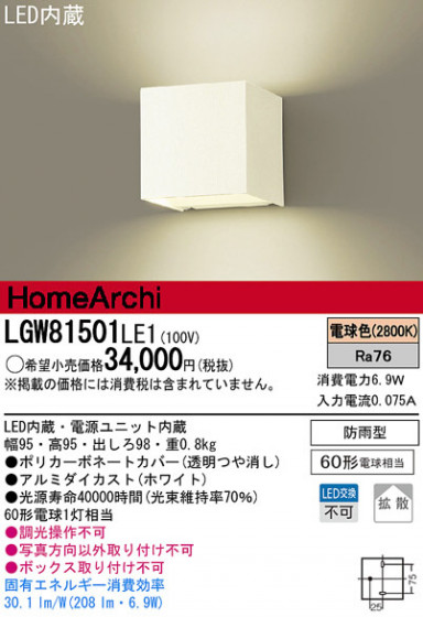 寸法:幅95・高95・出しろ98 製品重量:0.8 本体材質・仕上・色:ポリカーボネートカバー(透明つや消し)・アルミダイカスト(ホワイト)