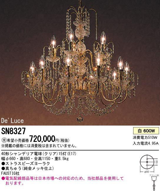 寸法:幅φ660・高680・全高1150 製品重量:8.5 本体材質・仕上・色:ストラスビーズヨーラク・真ちゅう(純金メッキ仕上)