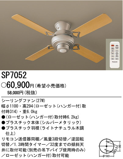 寸法:幅φ1100・高294(ローゼット(ハンガー付)取付時314) 製品重量:6 本体材質・仕上・色:プラスチック本体(シルバーメタリック)・プラスチック羽根(ライトナチュラル木調仕上)