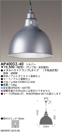 メタルハライドランプLタイプ (下向点灯形)E39 250W