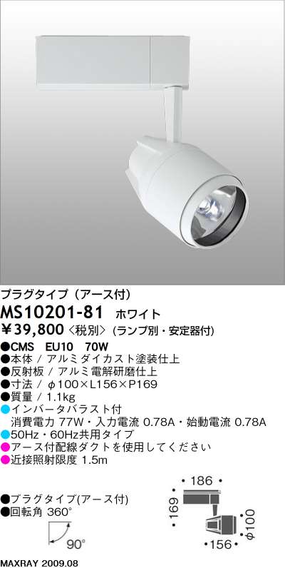消費電力 77W・入力電流 0.78A・始動電流 0.78A