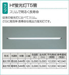 54W形×1灯 Hf電球色 蛍光灯高出力形T5管|LED 5W(2700K)×2灯|ダイクロハロゲン35W×2灯タイプ