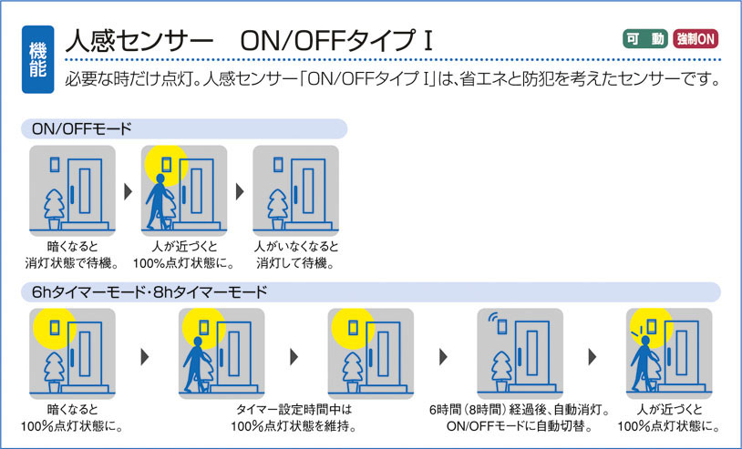 機能/他:■首振外向のみ150°・回転360°|■点灯照度調節機能付(15・45lx)|■点灯保持時間60秒|■AC100V|■絶縁台別売 DP-11805|■ランプ寿命30,000時間|■調光器併用不可|Ra80|ダイクロハロゲン50Wタイプ|標準色タイプ|DECOLED’S|人感センサー|ON/OFFタイプI|SAVE