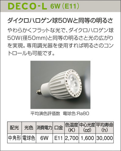LED 6W(E11) 電球色2700K DECO-L・中角形