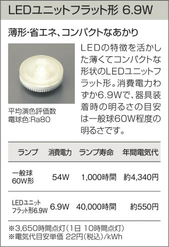 LEDユニットフラット形 6W ・広角形 電球色2800K