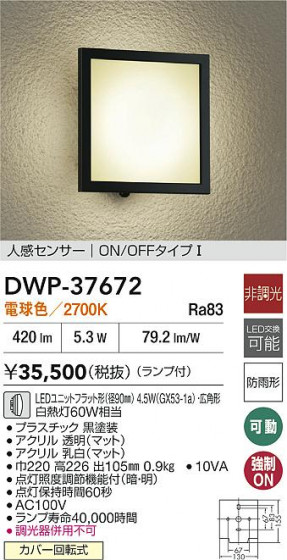 DAIKO 大光電機 人感センサー付アウトドアライト DWP-37672