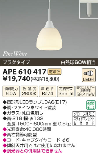 コイズミ照明 KOIZUMI LEDペンダント APE610417
