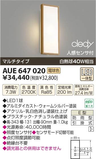 コイズミ照明 KOIZUMI LED防雨型ブラケット AUE647020