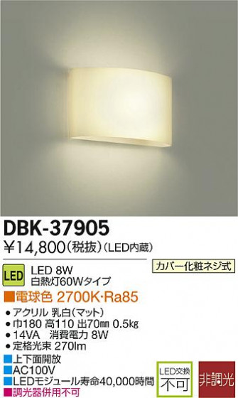 DAIKO 大光電機 LED DECOLED’S(LED照明) ブラケット DBK-37905