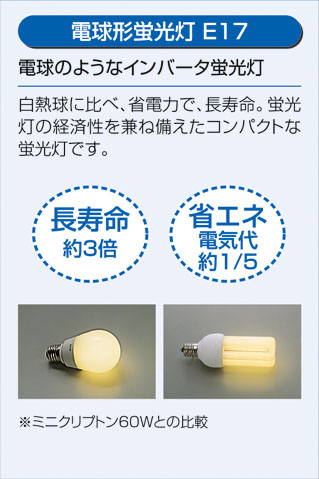 15W形(E17)×1灯 電球色 電球形蛍光灯(A形)