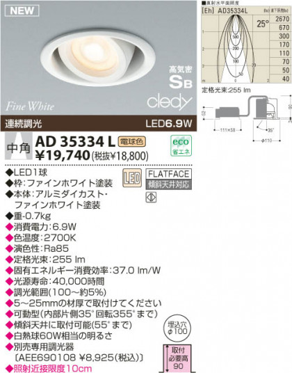KOIZUMI LEDユニバーサルダウンライト AD35334L