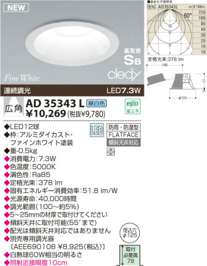 KOIZUMI LED高気密ダウンライト AD35343L