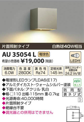 コイズミ照明 KOIZUMI LED防雨型ブラケット AU35054L
