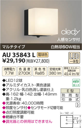 コイズミ照明 KOIZUMI LED防雨型ブラケット AU35843L