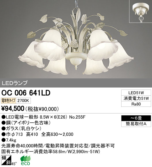 ODELIC オーデリック LED シャンデリア OC006641LD