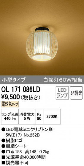 ODELIC オーデリック 小型シーリングライト OL171086LD