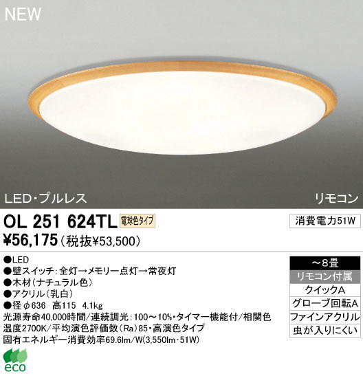 ODELIC オーデリック LED シーリングライト OL251624TL
