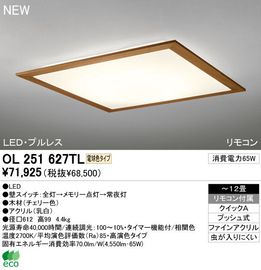 ODELIC オーデリック LED シーリングライト OL251627TL