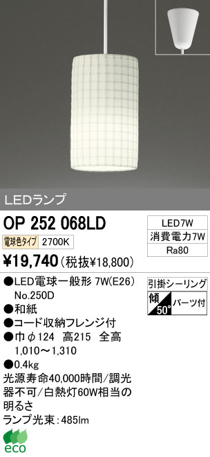 ODELIC オーデリック LED ペンダントライト OP252068LD