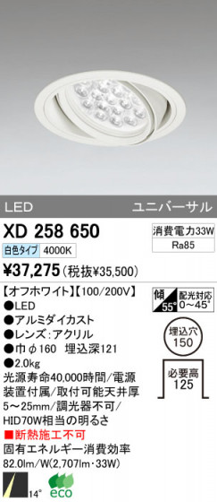 ODELIC オーデリック LED ダウンライト XD258650