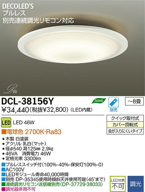 DAIKO 大光電機 LED DECOLED’S(LED照明) シーリング DCL-38156Y