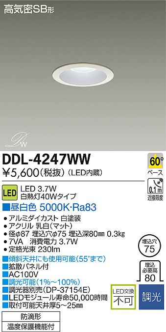 DAIKO 大光電機 LEDダウンライト(軒下兼用) DECOLED’S(LED照明) アウトドア DDL-4247WW