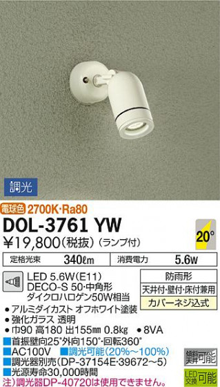 DAIKO 大光電機 アウトドアスポット DOL-3761YW