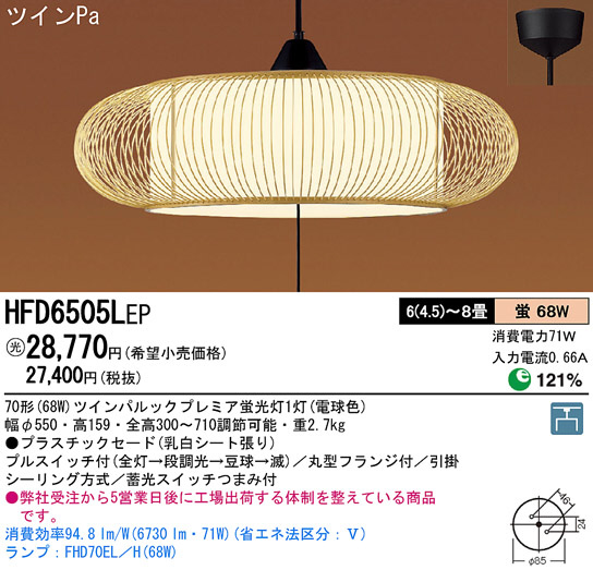 Panasonic ペンダント 和風照明 HFD6505LEP