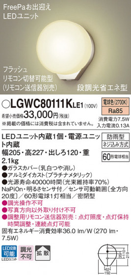 Panasonic LED エクステリア・アウトドア LGWC80111KLE1