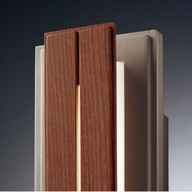 ●材質・仕上:アクリルカバー(乳白)・アルミダイカスト(プラチナメタリック)・ブラウン木調飾り