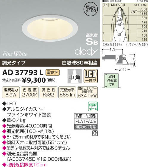 コイズミ照明 KOIZUMI LED高気密ダウンライト AD37793L