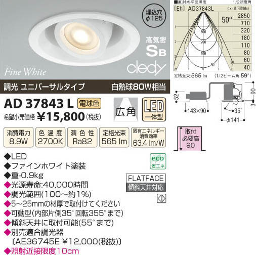 コイズミ照明 KOIZUMI LED高気密ダウンライト AD37843L