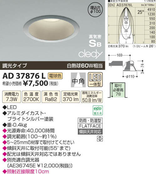 コイズミ照明 KOIZUMI LED高気密ダウンライト AD37876L