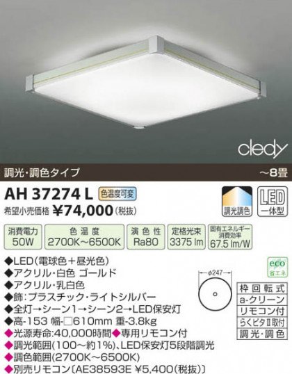 コイズミ照明 KOIZUMI LEDシーリング AH37274L